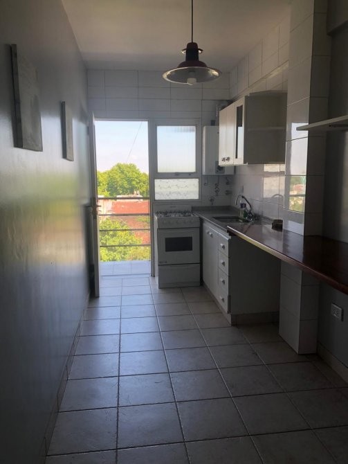 Impecable departamento de 2 ambientes con cochera, 2 ambientes amplios compuesto de amplia cocina con muebles sobre y bajo mesada, calefón, artefacto de cocina, conexión para lavarropas y salida al balcón, living comedor con balcón francés, dormitorio con placard empotrado, piso flotante y aire acondicionado, amplio baño con bañera y accesorios, toda la propiedad cuenta con luminarias, se encuentra recién pintado impecable. Cochera cubierta para auto mediano.